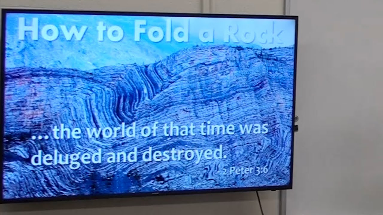Description: Bruce Malone is speaking at the West Michigan Creation Fellowship, which meets every third Tuesday at the Forest Hills Bible Chapel in Ada, Michigan. His topic is “How to Fold a Rock”, showing that the folded sediments found the the geologic record must have formed quickly and any sediments that are folded must have occurred while the sediments were pliable mud. He explains the history of how long periods of times, millions of years, became embedded in the thinking of geologists. Charles Lyell came up with the idea that if he could show that the sedimentary layers of rock were laid down over millions of years, he could subtly discredit the authority of the Bible and free geology from the timeline of Moses. For many years, this uniformitarian doctrine was what was taught in public schools and universities. It still is for the most part, but amongst themselves, geologists realize that catastrophe is the best explanation for the what we find in the geologic record. An example is the Chattanooga Shale, a formation that covers much of the North American continent, but is mostly flat, about 20 feet thick, with no evidence of eroded features in it. He shows many more examples how a world-wide flood is the best explanation for vast amounts of sediment laid down all over the world.