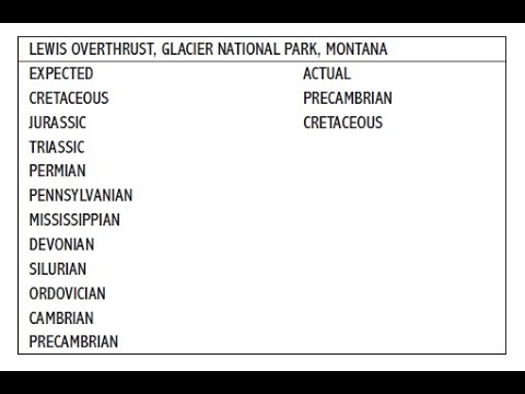 Description: This is a historic argument by Creationists used by Henry M. Morris in The Genesis Flood. Walter Lammerts in the 1960’s documented a long list of out of order strata that didn’t fit the traditional geologic column proposed by evolutionists. In 2001, we set out to explore the scope of the strata mix-up in Glacier National Park. First identified by Willis in 1901, the rock strata on top are identified as Precambrian, but the layer underneath is Cretaceous. The Cretaceous has dinosaur fossils, but the Precambrian is supposed to be the age before life evolved. Geologists call this an “overthrust” but the evidence for rock movement doesn’t exist Many years ago, John Read produced a film strip called Rocks, Strata and Evolution, showing the research done at Glacier National Park by Clifford Burdick. They excavated the contact between the two layers and found that it was like a knife edge. If there was a substantial amount of movement that shoved the Precambrian mountain on top of the Cretaceous rock, there would be evidence of that movement. That evidence would be slickensides, fault gouge, breccia, and rubble resulting from movement. One of the prominent features of the park is Chief Mountain, where the out of order sequence is clearly visible all around the mountain. To move an entire set of mountains 300 miles long 50 miles to the east would take tremendous earth forces. These layers instead appear to be water deposited on top of each other with no signs of movement.